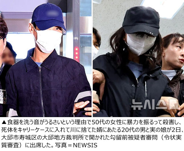 【NEWSIS】50代の女性を殺害し、死体を遺棄した容疑で、被害者の婿に当たる20代の男と実の娘の勾留が決定した。