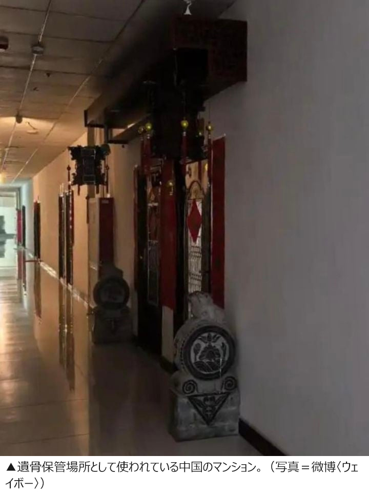 【NEWSIS】中国で、墓地費用の急騰と不動産市場の低迷が重なり、マンションの空室を遺骨保管場所として使う「遺骨部屋」が増えているという。これに対し、当局が厳しい規制に乗り出した。