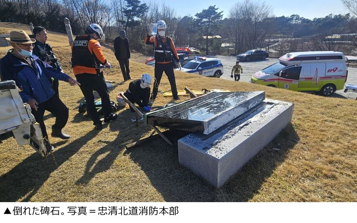 【NEWSIS】5日午後3時47分、忠清北道清州市西原区の公園墓地で、65歳の男性が倒れた碑石の下敷きになり、死亡した。