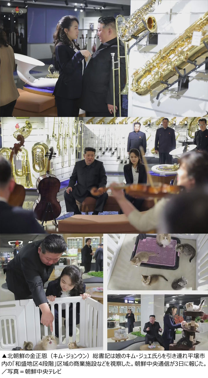 【NEWSIS】北朝鮮の金正恩(キム・ジョンウン)総書記は娘のキム・ジュエ氏らと共に平壌市内に新たに設置された商業地区を視察したが、その際に父娘の仲の良い様子も同時に報じられた。朝鮮中央通信は3日、金正恩総書記が完成を目前に控えた和盛地区4段階区域のサービス施設を視察し、オープンに向けた準備状況を確認したと報じた。