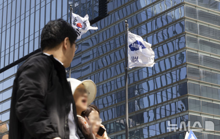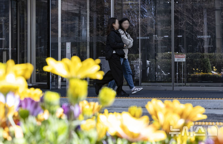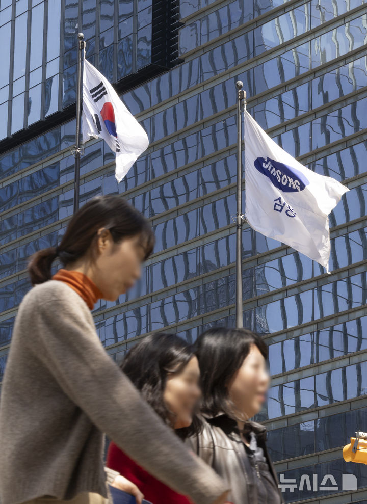 【NEWSIS】サムスン電子が今年第1四半期に史上最大の実績を達成した7日午後、ソウル市瑞草区のサムスン電子瑞草社屋を行き交う同社従業員。