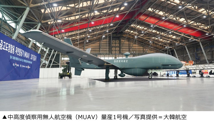 大韓航空は8日、釜山市江西区の大韓航空テックセンターで「MUAV量産1号機出庫記念式」を開いた。防衛事業庁主管、大韓航空・LIGディフェンス&エアロスペース(..