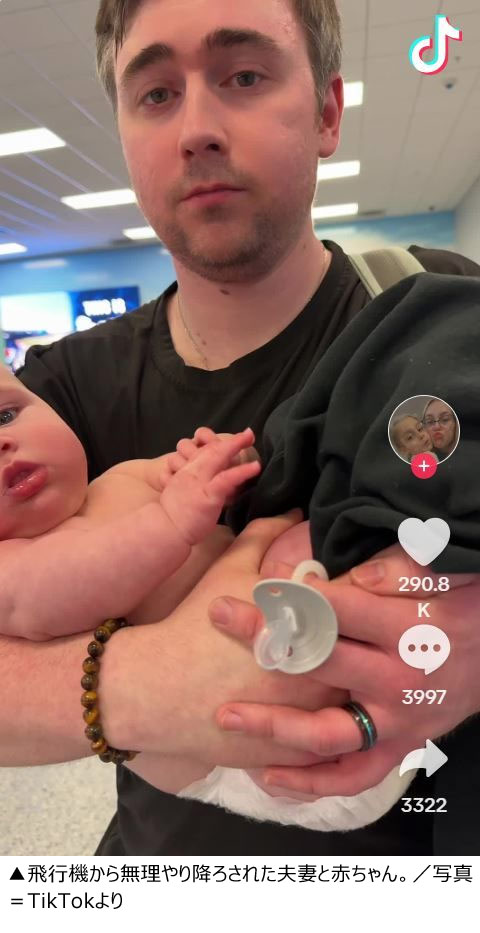 【写真】飛行機から無理やり降ろされた赤ちゃんと父親