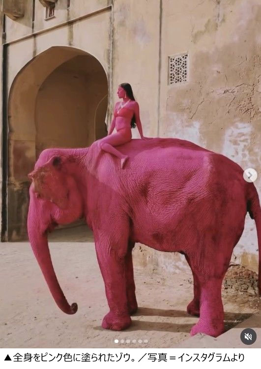 【NEWSIS】インドで、ロシア出身の写真家が撮影のためにゾウを全身ピンク色に塗っていたことが分かり、動物虐待だとして論議を呼んでいる。