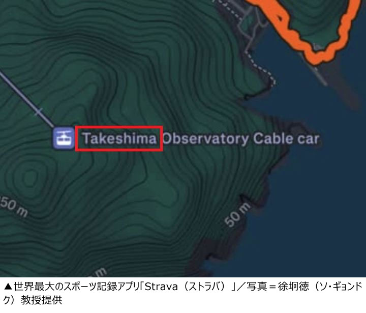 徐坰徳教授は7日、自らのSNS(交流サイト)に「ネットを通じて提供された情報を確認したところ、鬱陵島の『独島展望台ケーブルカー』が『竹島展望台ケーブルカー』と誤って表記されていた」「ストラバに直ちに抗議メールを送付した」と投稿した。