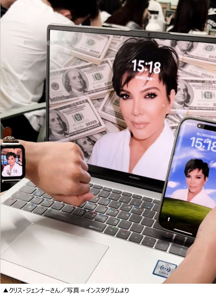 中国のZ世代ユーザーは、クリス・ジェンナーさんの顔をさまざまな画像と合成し、「弁護士のクリス」や「先生のクリス」などに加工、プロフィール写真やスマートフォンの待ち受け画像に設定している。