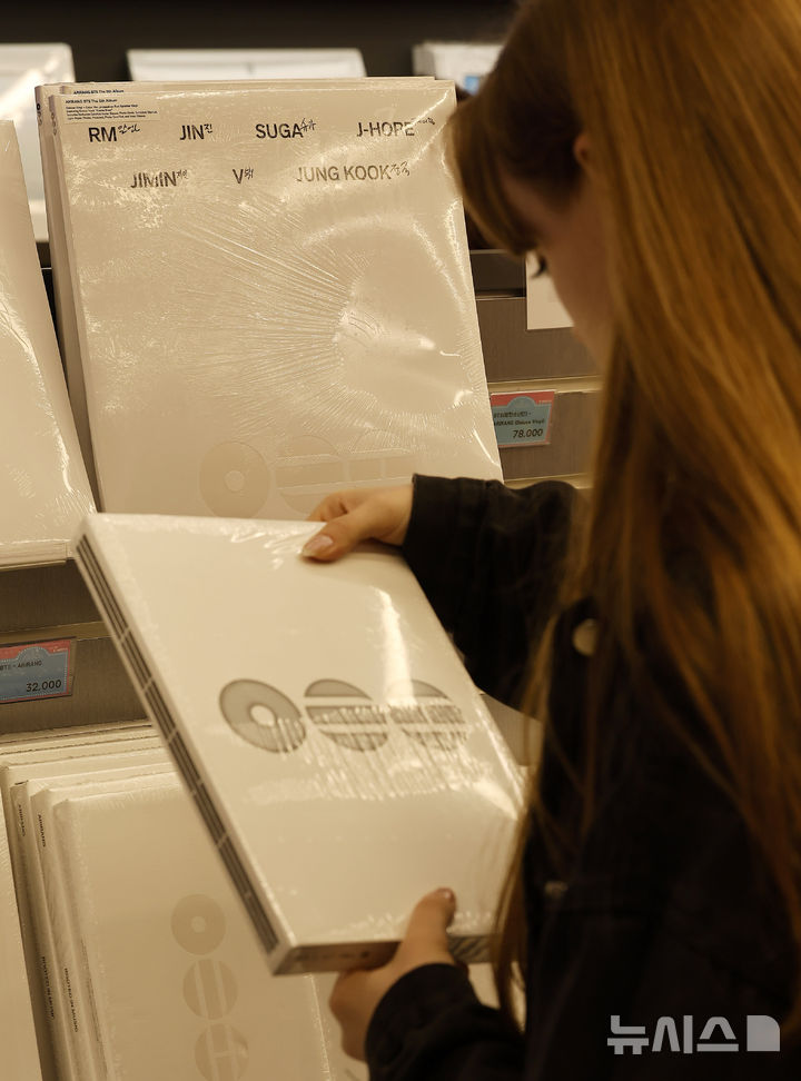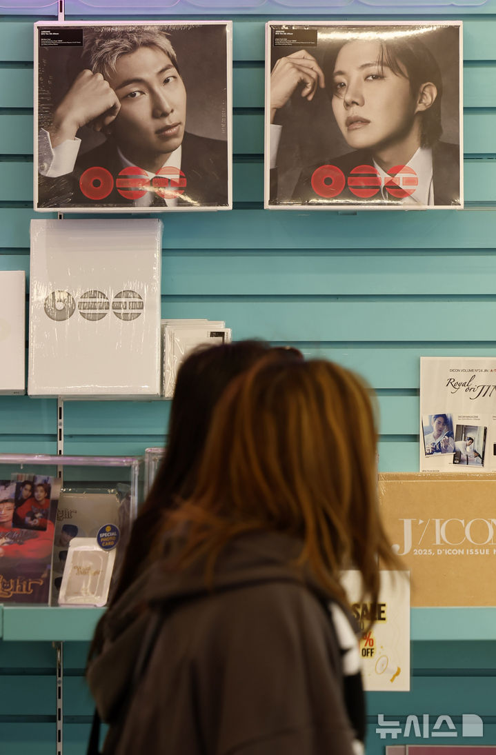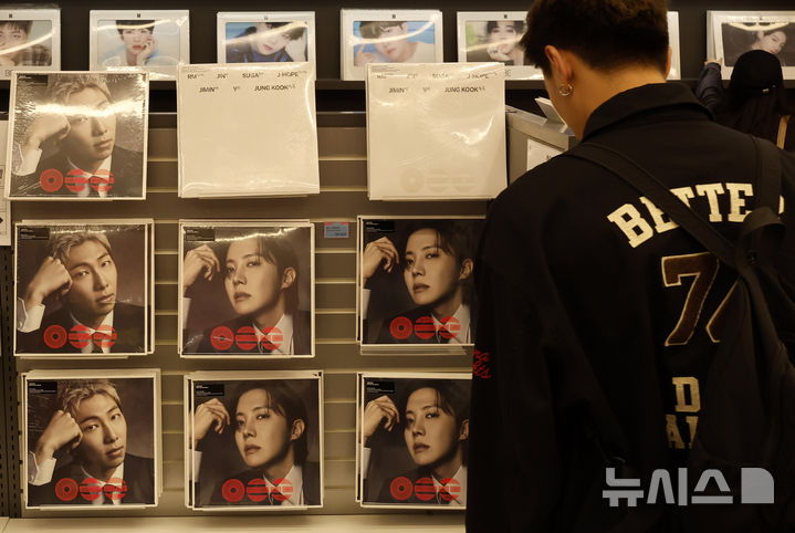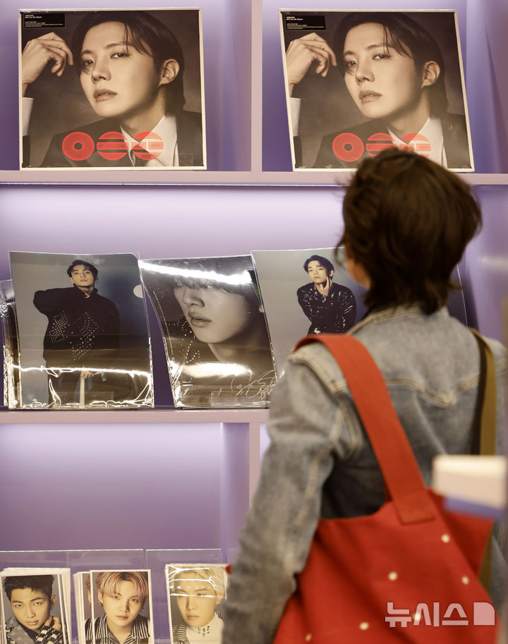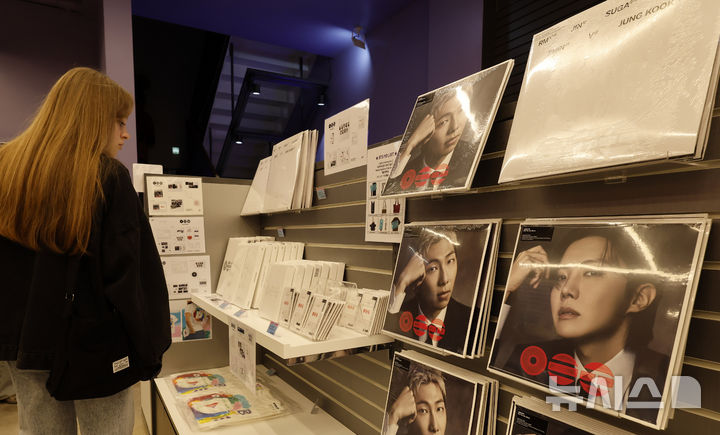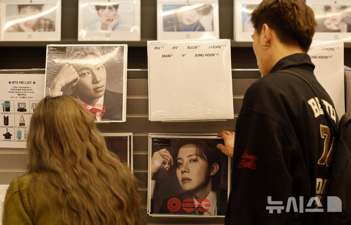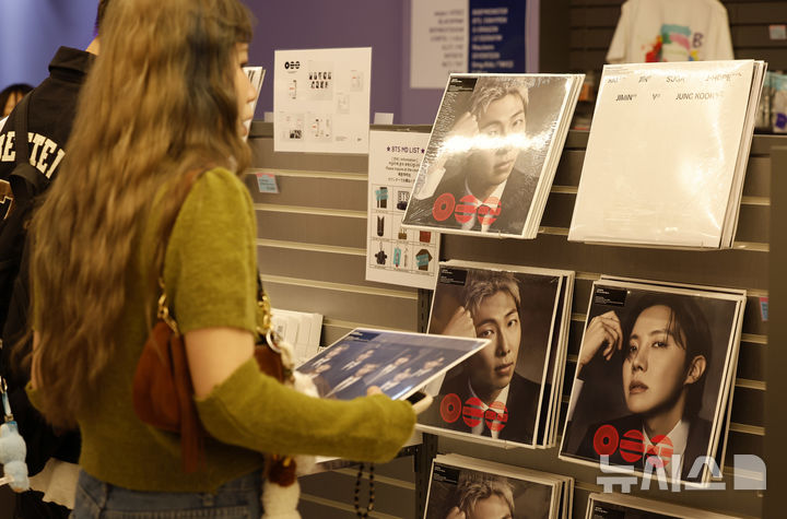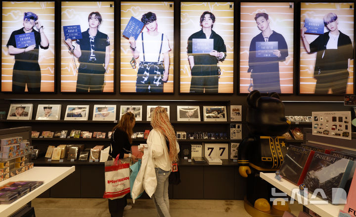 【NEWSIS】ソウル市中区明洞のK-MECCA明洞本店で防弾少年団のアルバムなどのグッズを見て回る外国人観光客の様子。