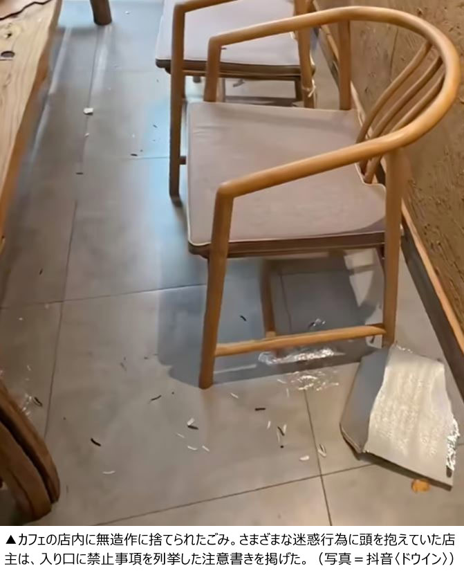 一方、いわゆる「偽上流階級」をターゲットにした文言も書かれていた。これは、豪快に消費する様子を見せつけて上流階級のイメージを演出する人々を指すネット用語だ。カフェ側は、「偽上流階級」の人々が黒いストッキングやつけまつげ、服や化粧品などを店に捨てて帰り、他の来店客の迷惑になっていると主張した。