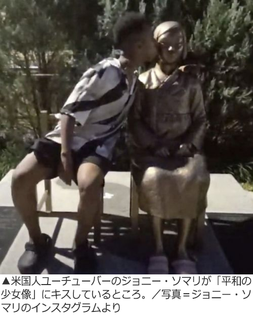 旧日本軍の慰安婦被害者を象徴する「平和の少女像」にキスしたり、合成されたわいせつ動画編集物を配信したりといった奇行を繰り広げた米国人ユーチューバーのジョニー・ソマリ被告が、一審で懲役刑を言い渡され、法廷で身柄を拘束された。