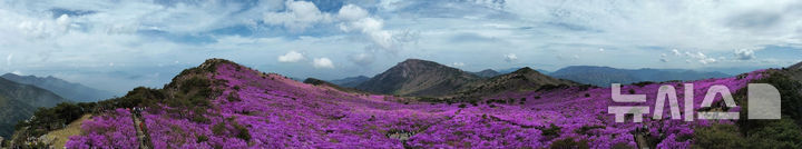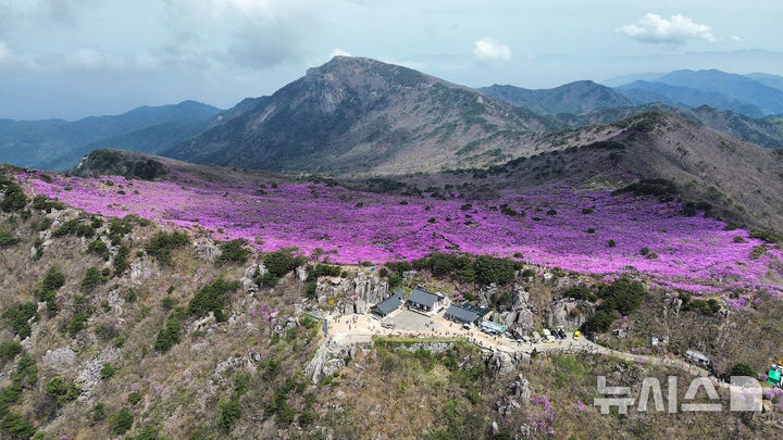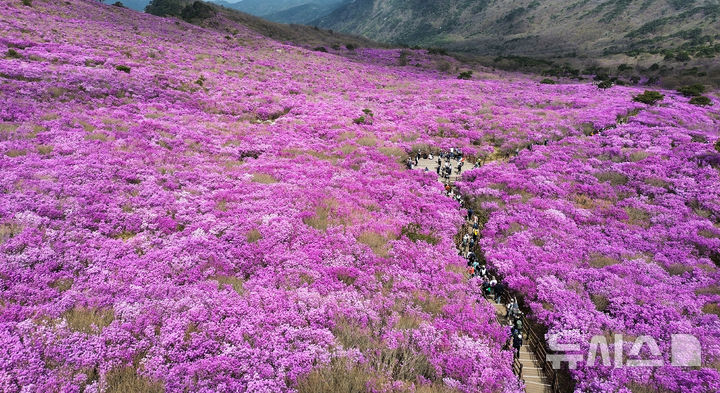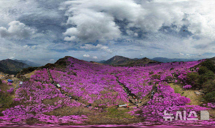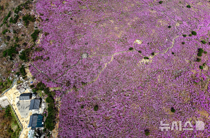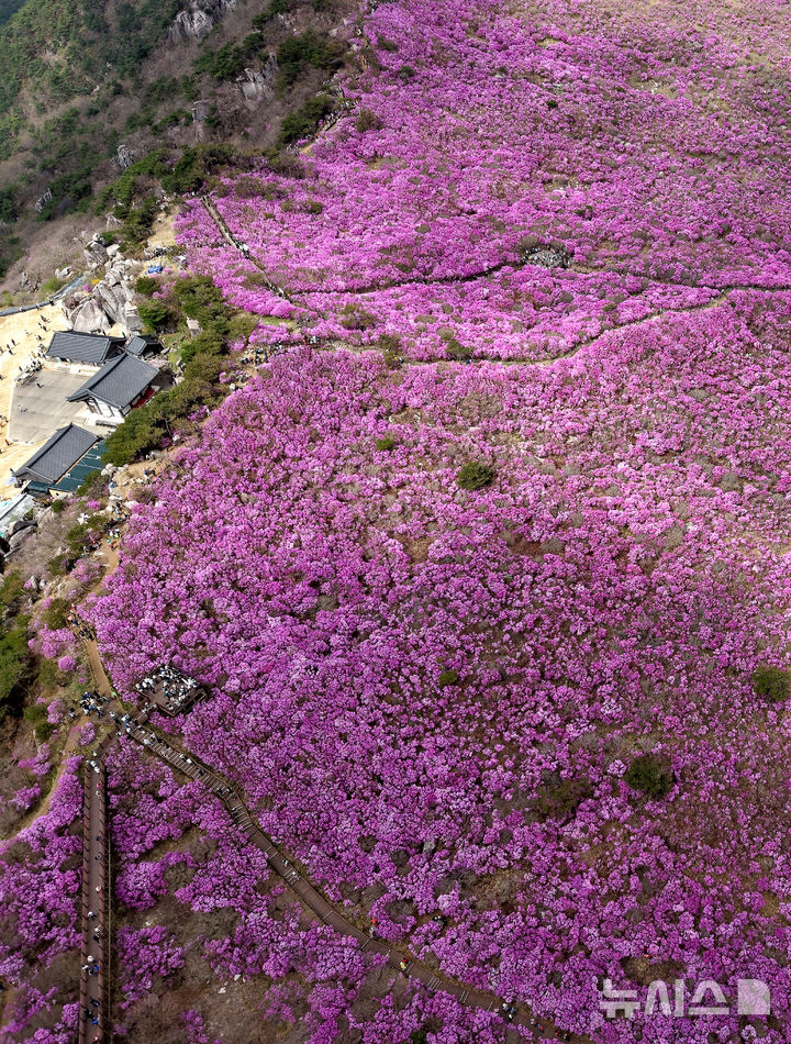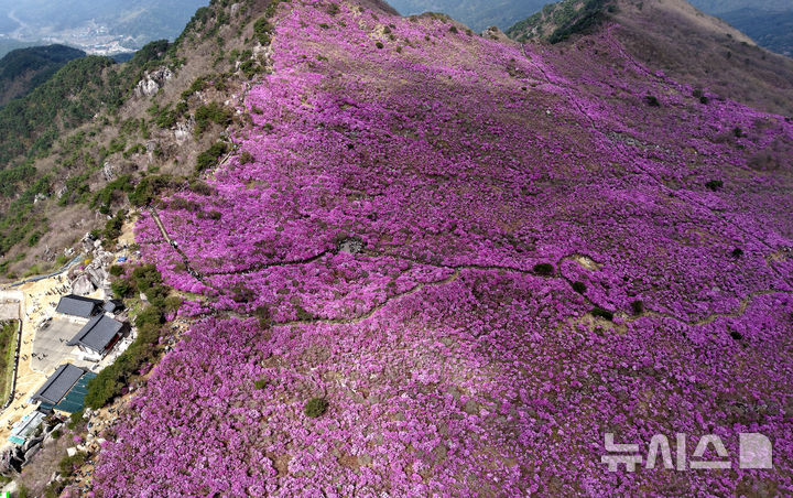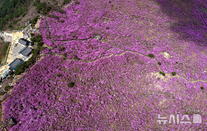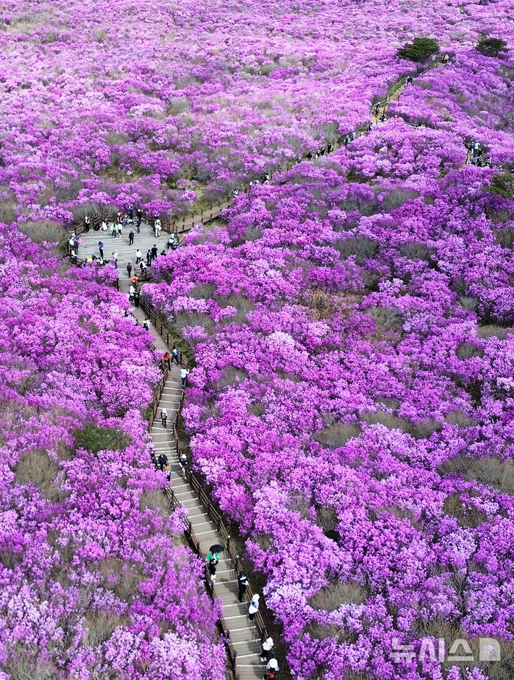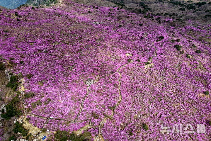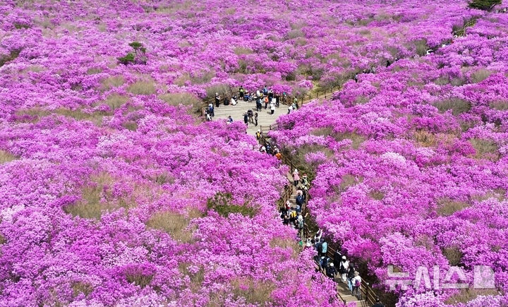 【NEWSIS】春らしい陽気となった19日、大邱市達城郡にある琵瑟山のツツジ群落地はいっせいにピンク色に染まっていた。