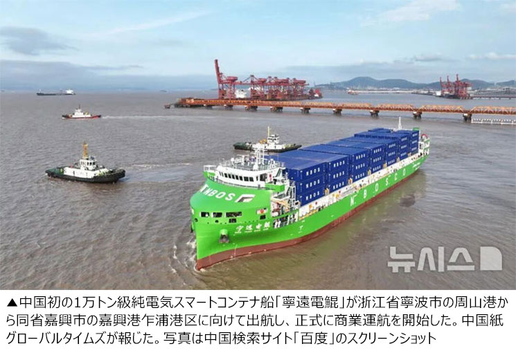 【NEWSIS】中国で世界最大規模のスマート機能を備えた1万トン級の電気コンテナ船が引き渡され、運航を開始した。中国国営英字紙グローバルタイムズが15日報じた。