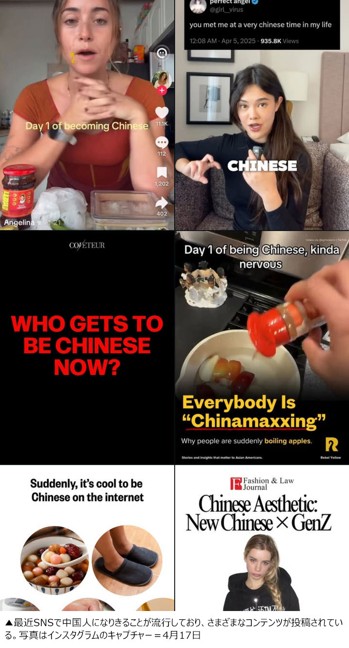 【NEWSIS】最近ソーシャルメディア(SNS)では、「中国人になること」が流行している。中国の生活習慣や文化を積極的に取り入れ、ライフスタイルを「中国化」して最適化しようとする「チャイナマクシング(Chinamaxxing)」と呼ばれる風潮を巡り、専門家は中国文化の国際的な影響力が高まっていると分析した。