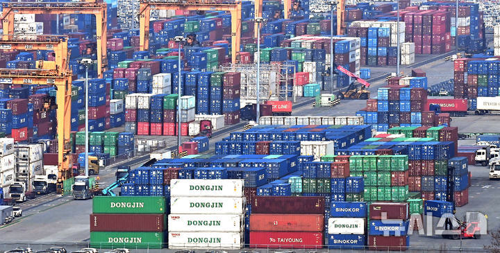 ▲京畿道平沢港に積み上げられた輸出入コンテナ/写真=NEWSIS DB
