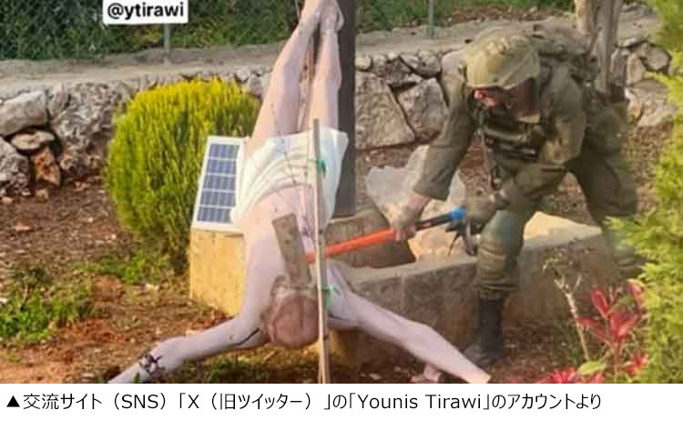 【写真】イスラエル兵がハンマーでイエス像を破壊する様子