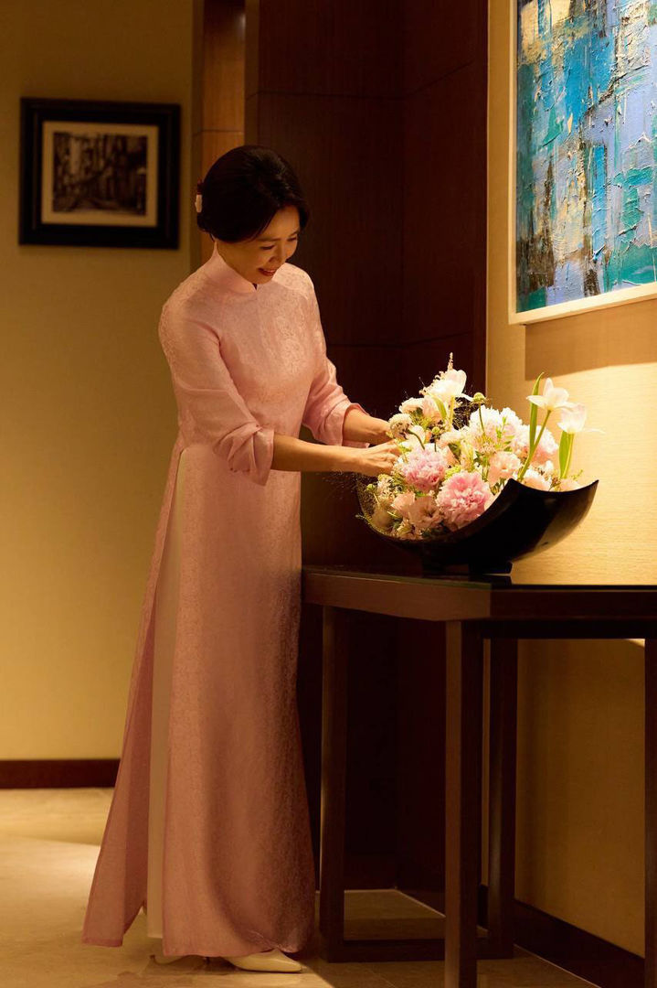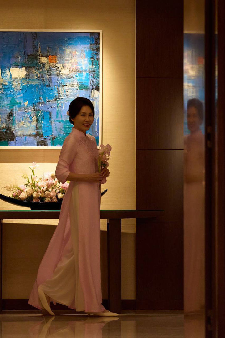 【NEWSIS】青瓦台(韓国大統領府)は、李在明(イ・ジェミョン)大統領の配偶者・金恵景(キム・ヘギョン)夫人が、ベトナムのトー・ラム共産党書記長兼国家主席の配偶者ゴ・フオン・リー夫人から贈られたベトナムの伝統衣装「アオザイ」を着た姿を23日に交流サイト(SNS)で公開した。写真=李在明大統領のSNSアカウントより