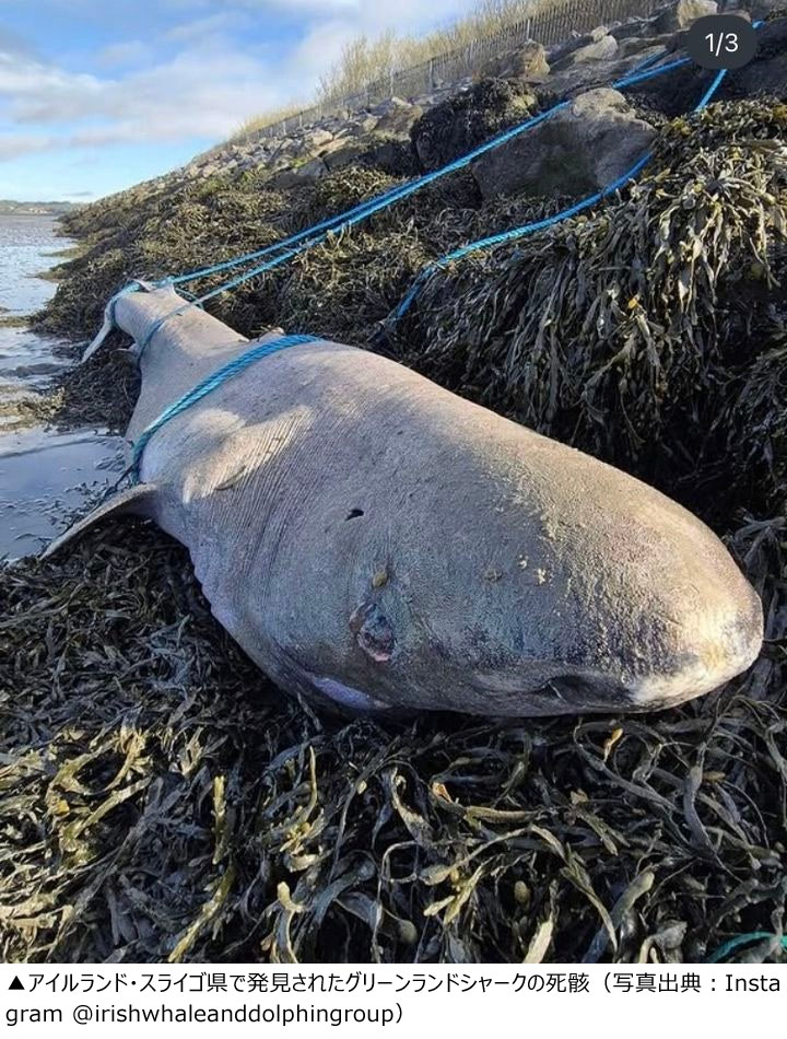 4月14日(現地時間)のニューヨーク・ポストによると、アイルランド・スライゴ県フィニスクリンビーチを散歩していた市民が、最近海岸に打ち上げられたサメの死骸を発見した。この個体は同地域で初めて確認されたグリーンランドシャークの座礁事例として記録された。