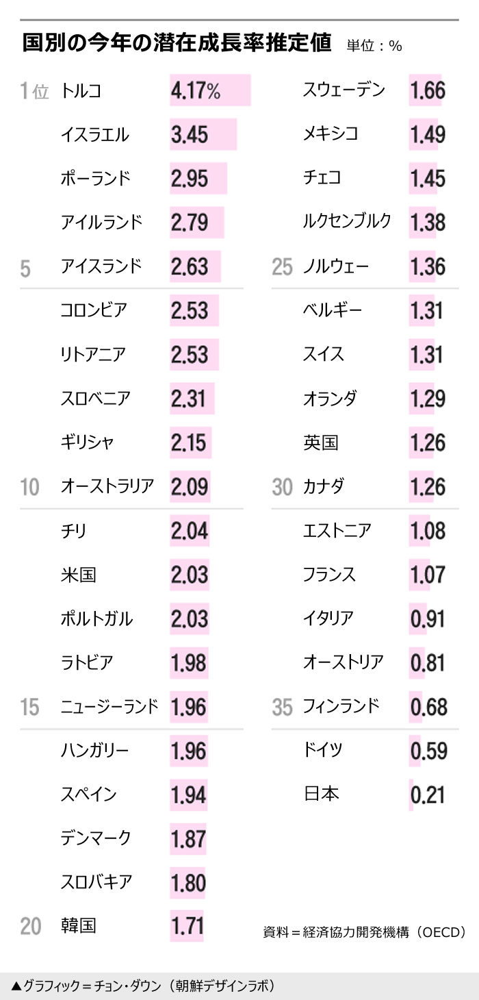 【表】韓国と日本は何位? 国別の今年の潜在成長..