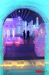 江原道華川郡でヤマメ祭りが連日にぎわっている中、会場を訪れた観光客たちが14日、世界最大規模の室内氷の彫刻広場で楽しいひとときを過ごした。