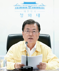 文大統領は16日、青瓦台(大統領府)の朴ギョン美(パク・ギョンミ)報道官を通じて「防疫措置を再強化することになって、国民に申し訳ない」「段階的な日常生活の回復過程で重症者の増加を抑えることができず、病床確保の準備が十分できなかった」と述べた。また、「防疫措置強化期間中にしっかりと再整備して状況をできるだけ安定させ、日常生活の回復という希望を持ち続けていく」「特に小規模事業者・自営業者の喪失感が大きいため、損失補償と共に防疫協力に対して最大限、手厚く支援できる案を速やかに執行する」と明らかにした。