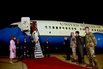 NHKは、ペロシ議長ら米連邦下院議員団が搭乗した専用機が同日午後9時50分ごろ、東京都福生市にある在日米軍横田基地に到着したと報道した。ペロシ議長は同日午後8時15分ごろ、京畿道平沢市内の在韓米軍烏山空軍基地で専用機に搭乗して日本に向かった。
