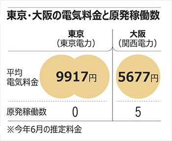 30年間物価が上がらなかった日本で、20-30%にもなる電気料金の急騰は、日本人にとって経験したことのない大変な事件だ。東京電力は、ロシアによるウクライナ侵攻により石油・天然ガスの価格が急騰したせいで、やむを得ないと説明している。だがこれは「半分だけ正しい」真実だ。東京の住民は電気料金急騰の直撃を受けているが、大阪の住民の電気料金負担はそれほどでもないからだ。現在、同じ量の電気を使っても東京は大阪より20%ほど料金が高い。東京と大阪を分かつ差はたった一つ。原発が稼働しているかどうかだ。東電には稼働中の原発(発電用原子炉)が1基もないが、関電では5基稼働している。