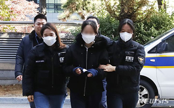 米国ニューヨークを出発して仁川へ向かっていた旅客機で非常口のドアを開けようとした20代の女性が24日午後、拘束前被疑者尋問(令状実質審査)を受けるため仁川市弥鄒忽区の仁川地裁に入っていくところ。