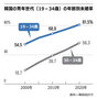 このように、未婚・晩婚化が加速し、生まれる子どもの数が減っているため、青年の人口は30年後には半減するとの見通しが示された。統計庁によると、韓国の青年人口の割合は1990年(1384万9000人)をピークに減少し、2020年には1021万3000人で韓国の総人口(5013万3000人)の20.4%だった。30年後の2050年には青年人口は521万3000人となり、総人口に占める割合が11.0%まで低下すると統計庁はみている。