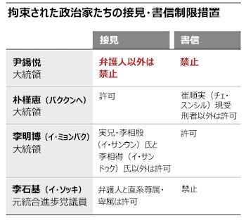 尹大統領との書信のやりとり禁止や弁護人以外との接見禁止措置は起訴前まで適用される。それまで尹大統領は金建希(キム・ゴンヒ)夫人をはじめとする家族や部外者との接見はもちろん、書信も交わすこともできない。