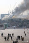 【NEWSIS】ソウル市竜山区の国立ハングル博物館屋上で1日、火災が発生して煙が立ち上っている様子。