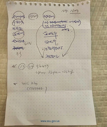洪・前次長は20日の弾劾審判廷に、本人が書いたという最初のメモを自ら持ってきた。このメモに関連して尹甲根弁護士は、洪・前次長に「清書したという補佐官は誰か」と尋ねた。これに対し洪・前次長は「現在国情院に勤務している職員」と答えた。