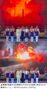 【写真】舞踊を披露する北朝鮮の子どもたちの背景にミサイル爆発シーン