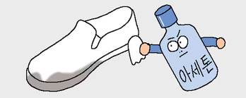 ゴム製の上履きについた汚れはアセトンでふくときれいに消える。コットンにアセトンを染み込ませてふいてみよう。運動靴のゴム底もきれいにすることができる。