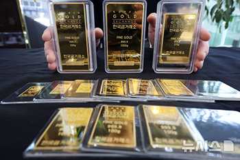 【NEWSIS】国際金価格が1オンス(約28.34グラム)あたり3000ドル(約44万6600円)を突破して史上最高値を更新した14日、ソウル市鍾路区の韓国金取引所鍾路本店に並ぶ金製品の様子。