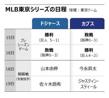 日本国内での興行を盛り上げるため、ドジャースとカブスは開幕試合に日本人大リーガー5人を前面に押し出して出場させる予定だ。ドジャースは第1戦の先発投手に山本、第2戦の先発投手に佐々木の登板を予告した。大谷は指名打者(DH)で出場する。カブスも第1戦の先発投手として今永を予告している。鈴木も外野手として先発出場する。