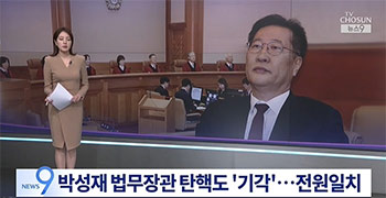 憲法裁判所が朴性載法務長官の弾劾を全員一致で棄却しました。 国会で訴追されてから119日目のことです。