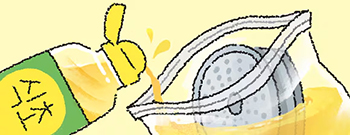 シャワーヘッドに汚れがこびり付いてしまった時は、お酢と水が入ったファスナー付きビニール袋に入れて30分ほどつけておこう。その後、使わなくなった歯ブラシでこすると、こびり付いた汚れもスッキリ落ちる。