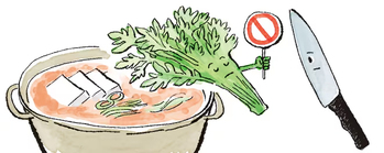 チゲ(鍋料理)を作る時、春菊を切って入れると香りがすぐに消えてしまう。チゲが出来上がったら、最後に切らずに入れると、春菊の香りをたっぷり楽しむことができる。