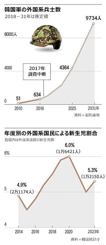 それに加え、国際結婚の増加に伴い、韓国社会が国際化するにつれ、両親の片方が外国人であるか、両親ともに外国出身で韓国に帰化した外国系兵士が増加している。兵役法が改正された2010年に51人だった外国系兵士は2018年に1000人を突破した。現在では数千人に上ると推定される。問題は「増加傾向」にあるという事実しか分からず、正確な数字さえ集計されていないことにある。