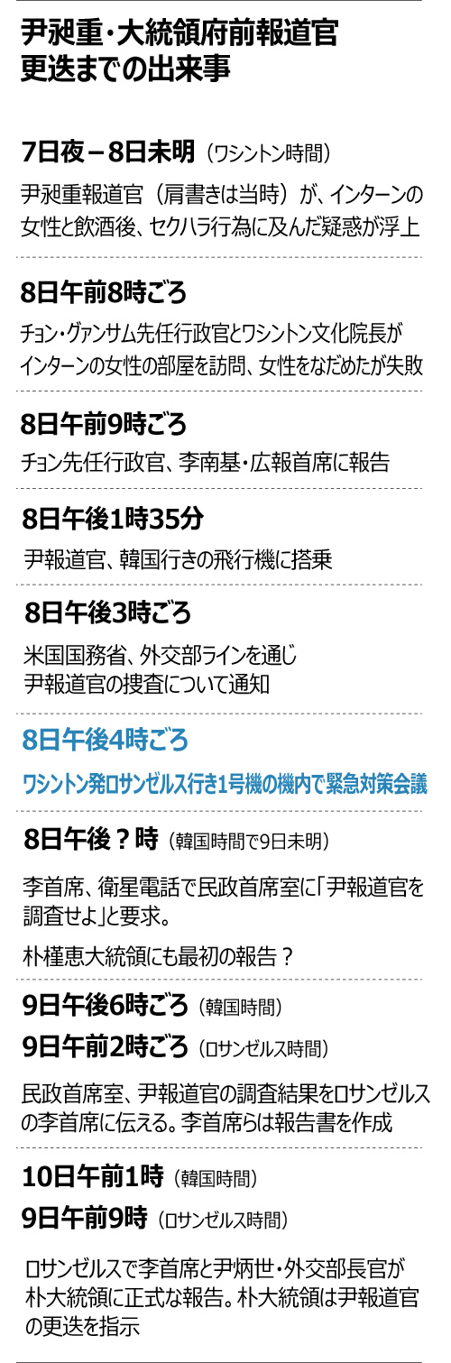 大統領府報道官更迭:大統領府激怒、米に異例の捜査要請