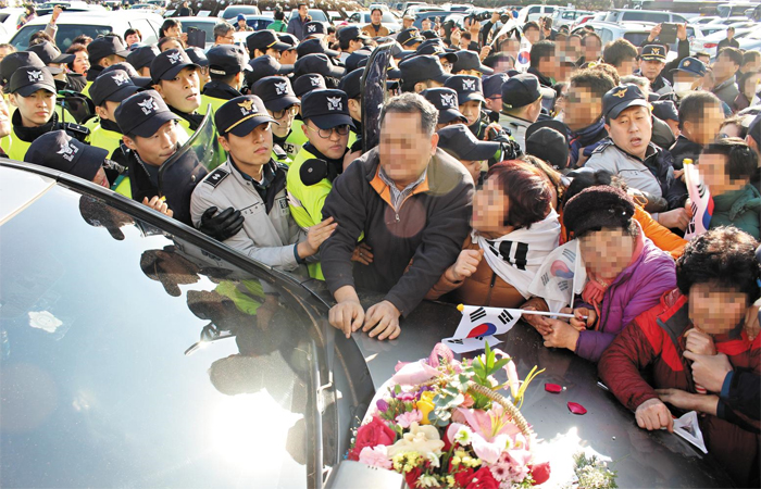 文在寅氏が乗った車、朴大統領支持者に囲まれ立ち往生 /亀尾(1/1)