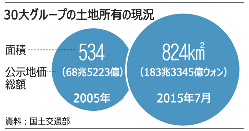 韓国30大グループ所有の土地、10年間で汝矣島の34倍に(1/1)
