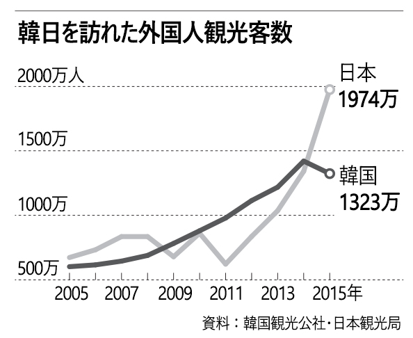 外国人観光客数、1年5カ月連続で日本を下回る(1/1)