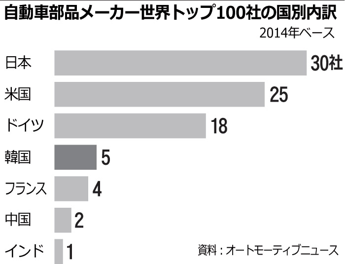 自動車部品世界トップ100社、韓国中小企業はゼロ(1/1)