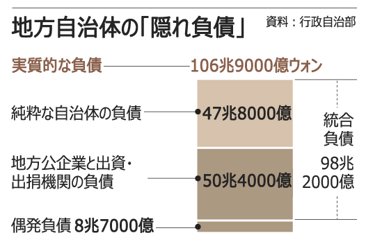 韓国の地方自治体、「隠れ負債」60兆ウォン(1/1)
