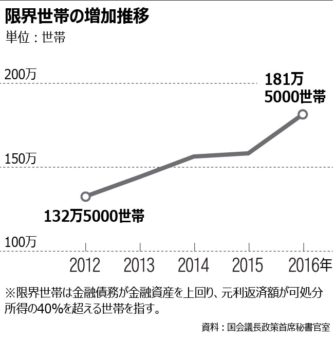 借金返済で限界まで追い込まれた韓国人世帯、4年で49万世帯増(1/1)
