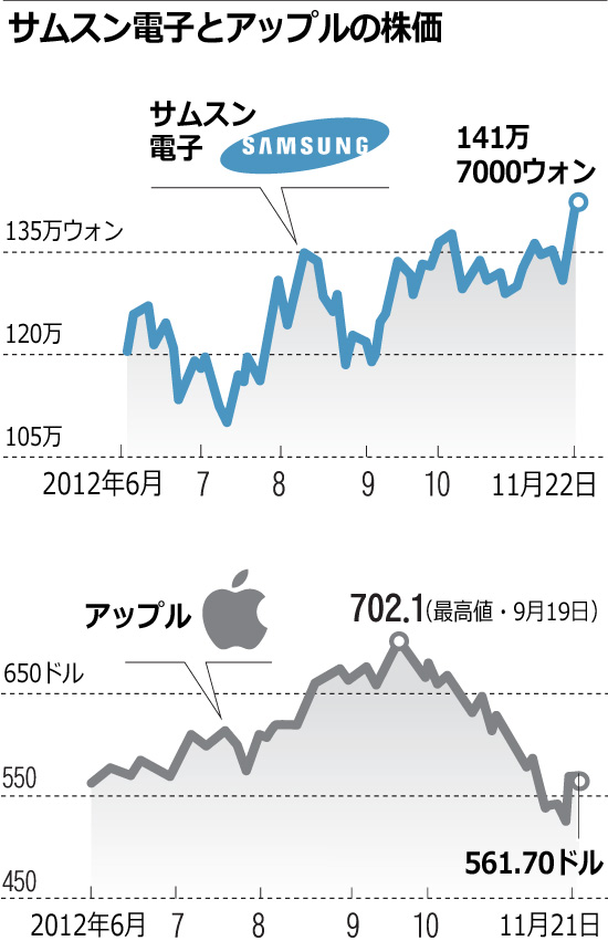 サムスン電子の株価、スマホ効果で最高値(1/1)