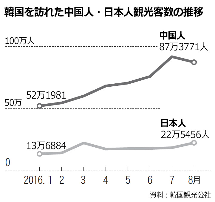 8月来韓中国人観光客が初の減少、THAAD問題が影響か(1/1)