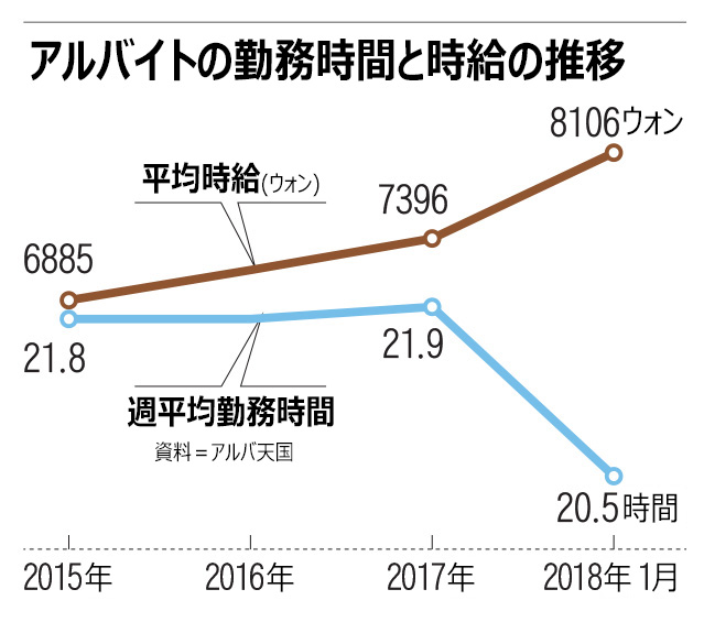 韓国最低賃金引き上げ、超短時間アルバイトが急増(1/1)