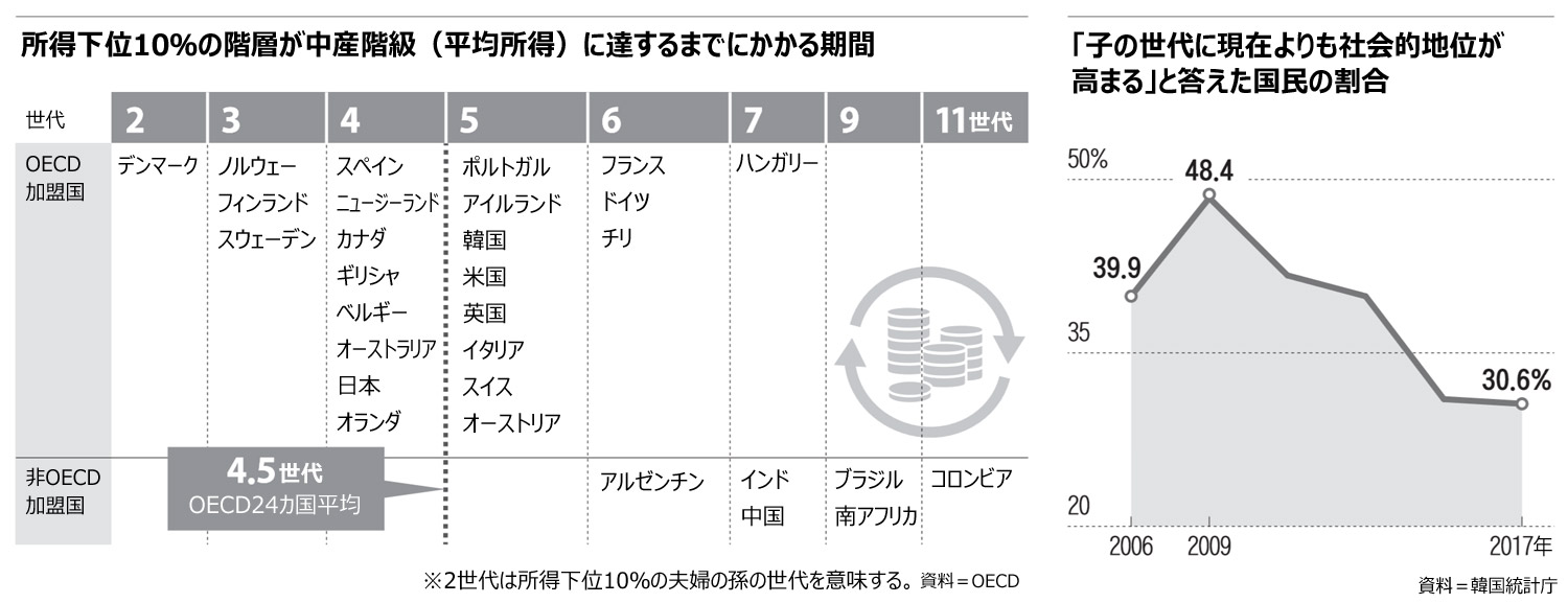 韓国の所得下位10%、中産階級入りには5世代必要(1/1)