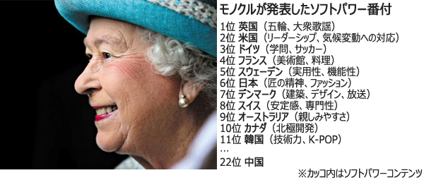 ソフトパワー番付で英国が1位、韓国11位(1/1)